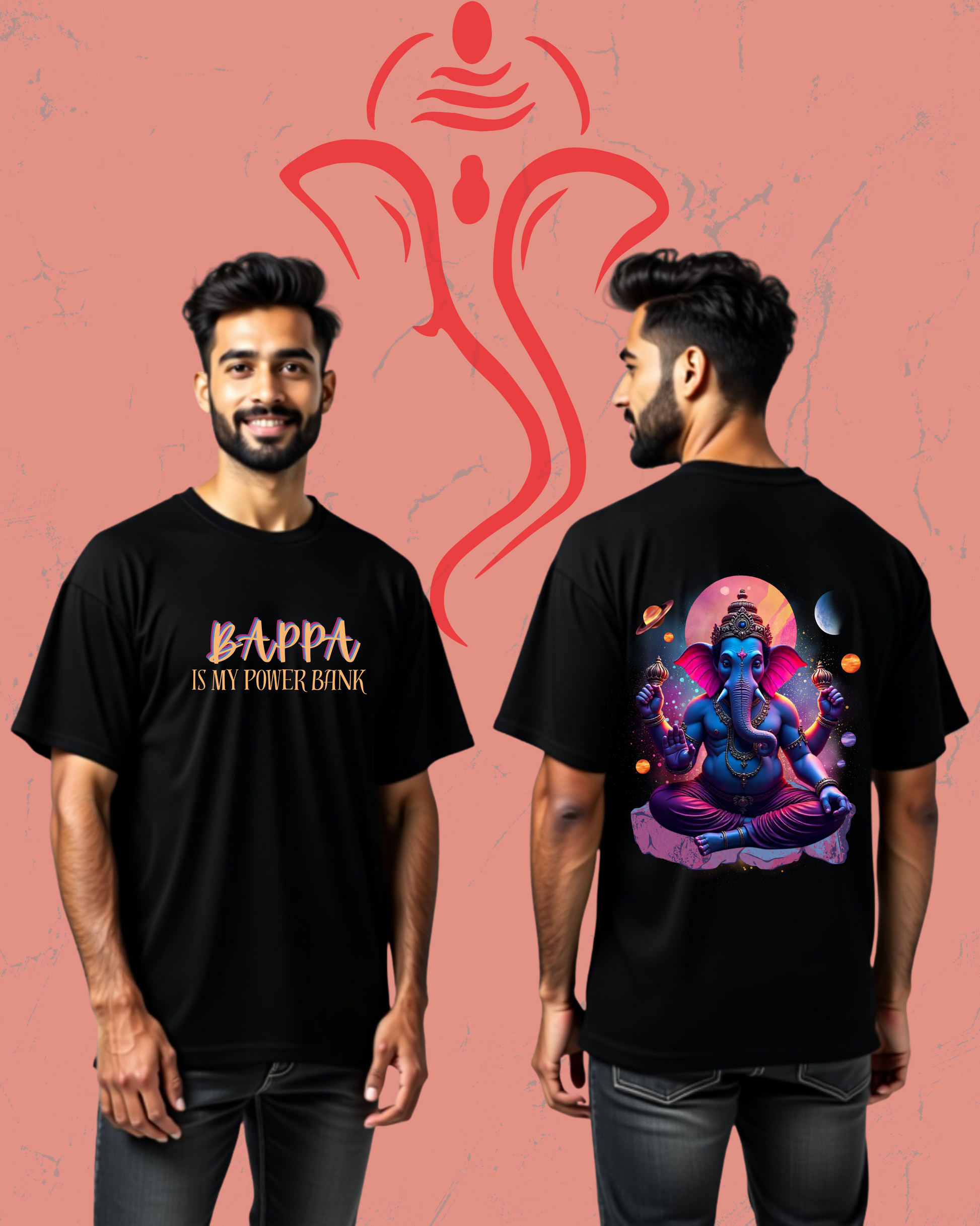🛕Bappa is my power Bank | Premium 100% Cotton Oversized Bio-Wash T-Shirt | Ganesh Chaturthi Special Edition | Unisex